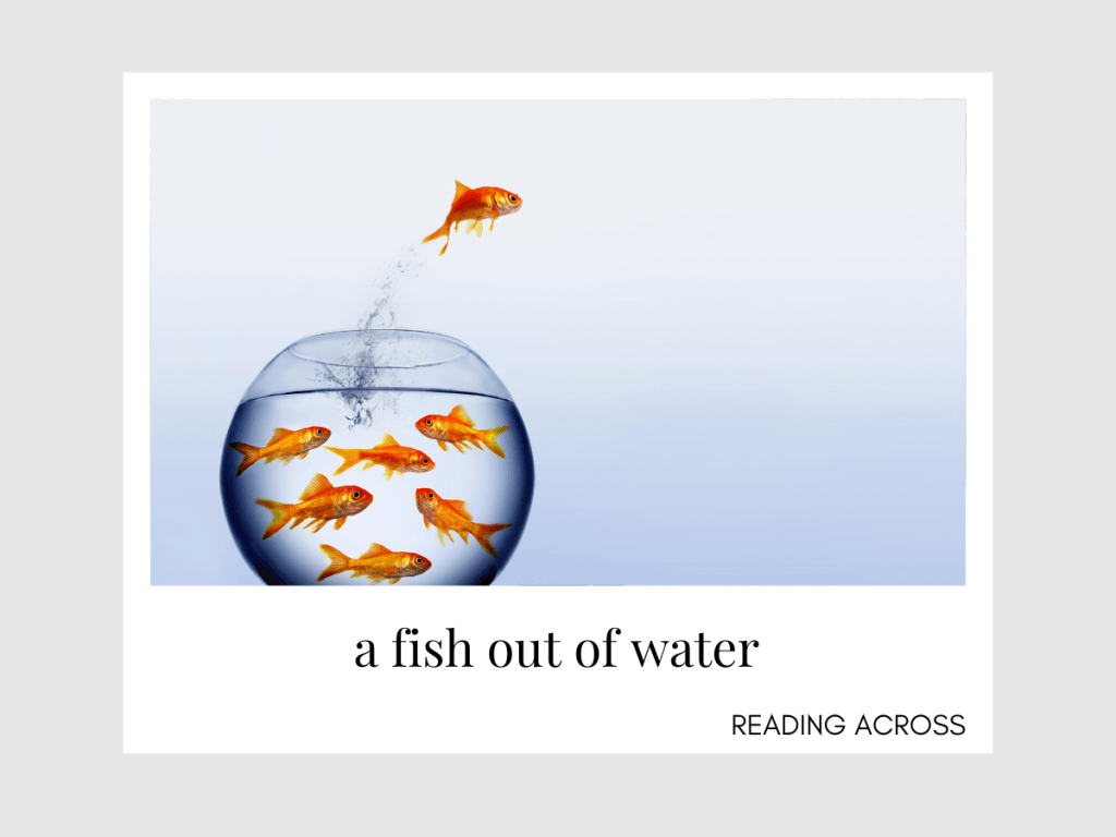 สำนวนเกี่ยวกับปลา ๆ วันนี้ขอเสนอสำนวนที่มีชื่อว่า a fish out of water ซึ่งความหมายตามตัวของมันก็คือ ปลาที่ไม่ได้อยู่ในน้ำ หากเราพิจารณาถึงสภาพของปลาที่ไม่ได้อยู่ในน้ำว่าเป็นอย่างไร มันก็จะตรงกับความหมายของสำนวนนี้ ซึ่งก็คือ