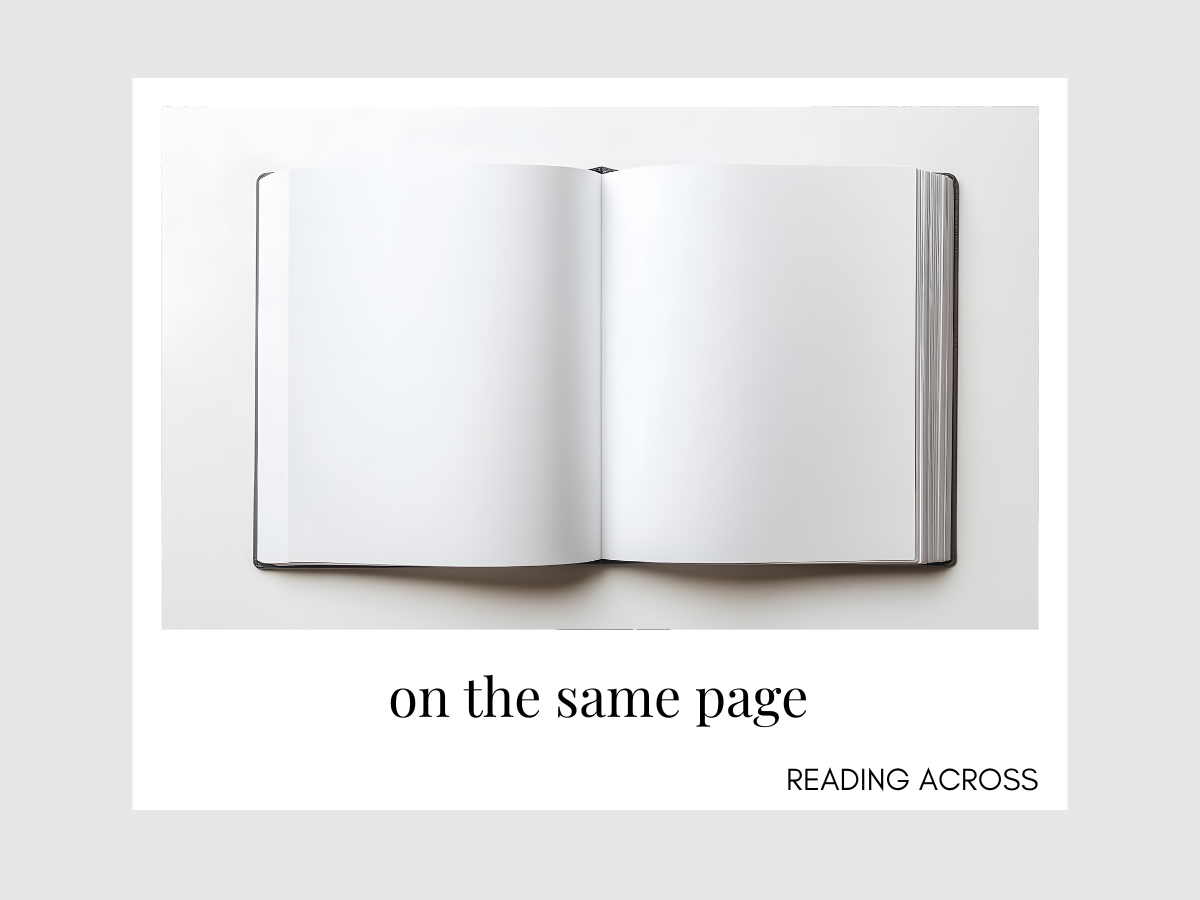 สำนวนที่เกี่ยวกับความคิดความเข้าใจในวันนี้ ขอเสนอสำนวนที่มีชื่อว่า on the same page ซึ่งหากเราแปลตรง ๆ ตามตัว มีความหมายว่าหน้าเดียวกัน แต่ในทางสำนวนนั้นมีความหมายว่า