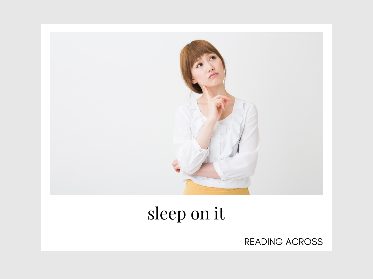 sleep on it ถ้าแปลแบบตรง ๆ ตัวเลย อาจได้ความหมายว่า นอนไปบนนนั้น หรือ นอนทับมัน แต่จริง ๆ แล้ว วลีนี้คือสำนวน ซึ่งมีความหมายดังนี้
