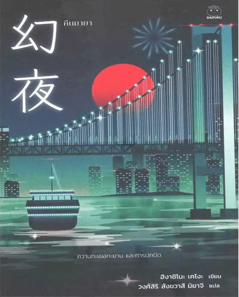 คืนมายา นิยายสายดาร์คเล่มหนากว่า 600 หน้า จากอาจารย์ฮิงาชิโนะ เคโงะ เปิดเรื่องท่ามกลางช่วงเวลาหลังเศรษฐกิจฟองสบู่แตก ธุรกิจล้ม คนตกงานจำนวนมาก และยังถูกซ้ำเติมด้วยเหตุแผ่นดินไหวครั้งใหญ่ที่เมืองเกียวโต เหตุการณ์ในคืนนั้นไม่เพียงคร่าชีวิตผู้คนจำนวนมาก แต่ยังเปลี่ยนเส้นทางชีวิตของชายหนุ่มและหญิงสาวคู่หนึ่งไปตลอดกาล